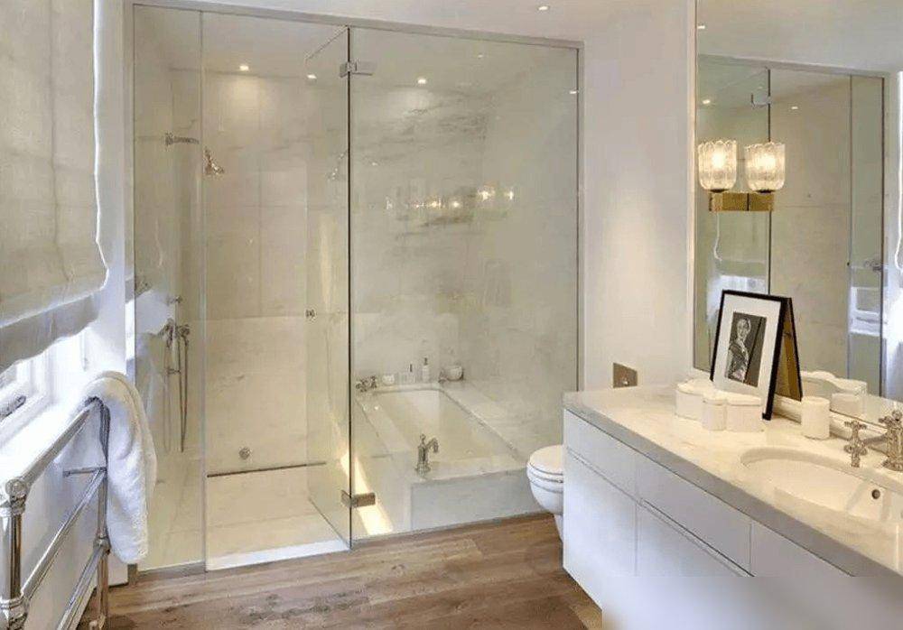 采光这事我之前真没当回事,直到有次朋友来家里,说“你家卫生间跟地窖似的,进去都得摸开关”。后来我把靠客厅的那面墙换成半透明磨砂玻璃,白天不用开灯,阳光能透进来,整个卫生间亮堂得像开了“自然滤镜”,视觉上看着比之前大了一圈——就换了一面墙,居然能有这么神奇的效果,你说巧不巧?
